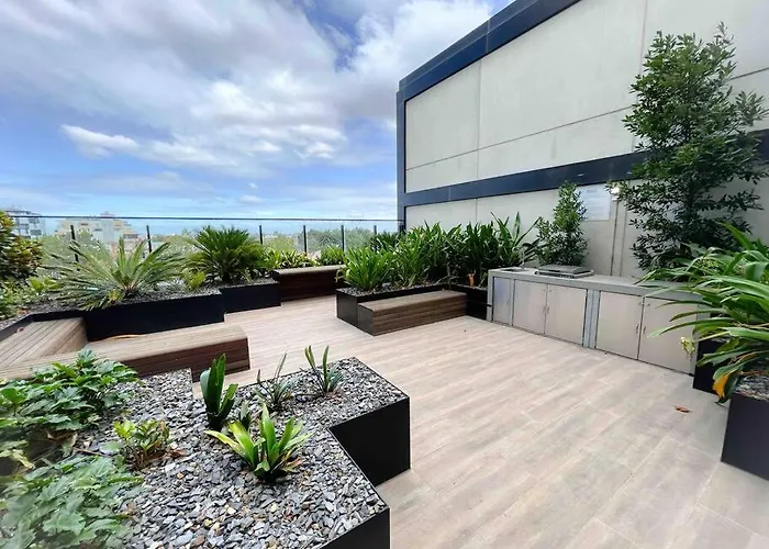 O apartamento Moonee Ponds Stylish Apartment - 415 oferece cozinha, bem como quartos com varanda, uma televisão de ecrã plano com canais por satélite e detetores de fumo. Rua Lygon e Hellenic Museum são respectivamente dentro de 6 km e 7 km de apartamento.